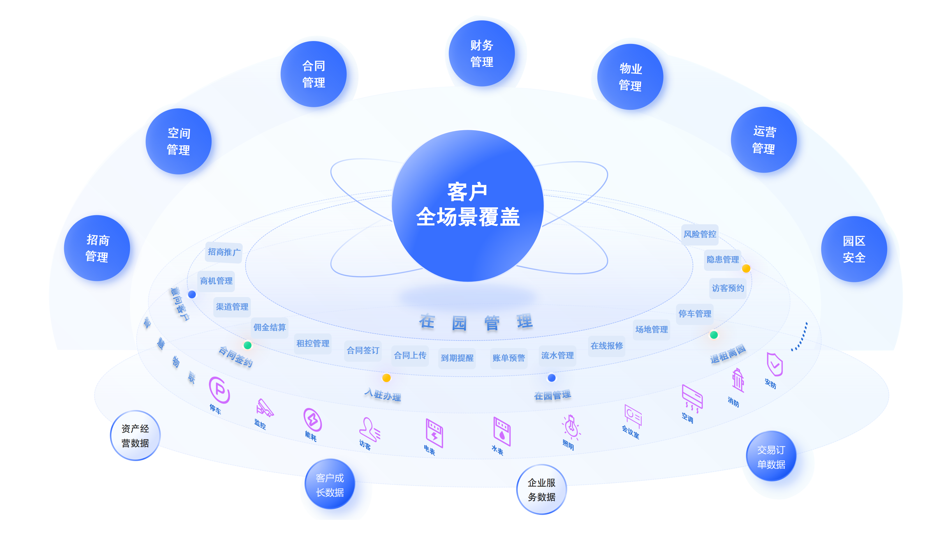 招商运营 、客户运营、资产运营、物业管理、园区安全、IOT物联